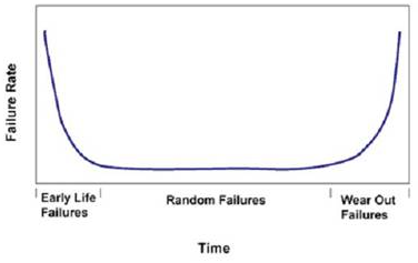 圖1“浴盆”形曲線顯示了半導(dǎo)體故障率隨時間變化的情況