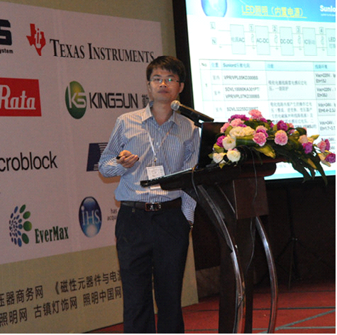 聚積科技照明產(chǎn)品總監(jiān)俞仲威帶來了《LED照明IC設(shè)計與電源模組應(yīng)用趨勢》。首先講述LED照明發(fā)展的市場,再分析LED燈管的發(fā)展,講解不同燈具對模組設(shè)計帶來的沖擊、LED應(yīng)用趨勢,最后拋出可控硅調(diào)光的議題,與現(xiàn)場聽眾進行了探討。