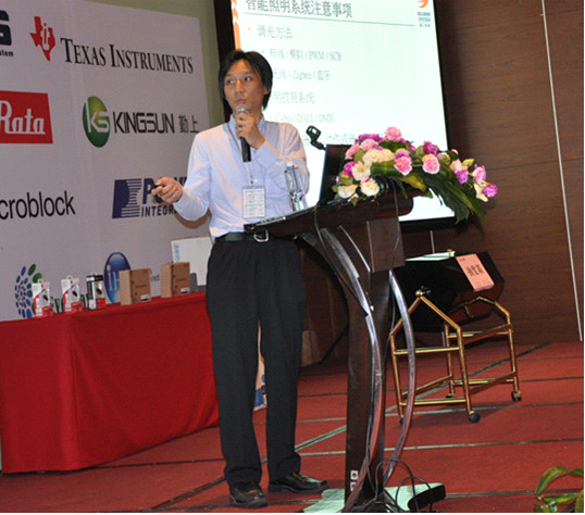 晶門科技有限公司業(yè)務(wù)營運總監(jiān)區(qū)偉江通過《步入智能環(huán)保新紀(jì)元》的主題演講,講述晶門科技的智能模塊解決方案,通過它的智能接口,采用PWM或模擬調(diào)光,可接駁不同的控制系統(tǒng)。其獨特的模塊化設(shè)計,可以結(jié)合DALI,ZigBee或藍牙等遙控系統(tǒng)成為小巧的系統(tǒng)設(shè)計。