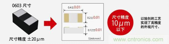 與以往的0603尺寸產(chǎn)品相比,尺寸成功減少了 82%(體積比)
