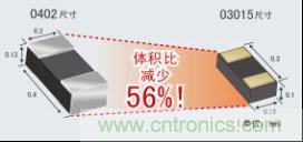 與以往的0402尺寸產(chǎn)品相比,尺寸成功減少了56%(體積比)
