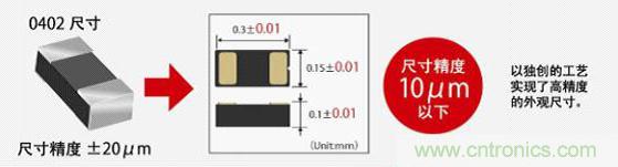 表2:采用獨(dú)創(chuàng)的工藝技術(shù),實(shí)現(xiàn)世界最小※的03015尺寸