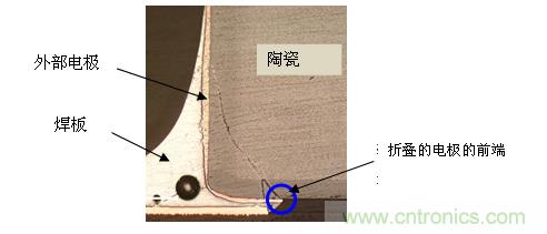 圖3:一般性的MLCC的電路板偏轉(zhuǎn)應(yīng)力(橫截面照片)