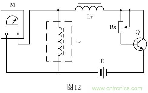 在圖11中,E為穩(wěn)壓電源,Rx為可調電阻,Q為晶體管大功率放大器(必須帶散熱片);調節(jié)穩(wěn)壓電源的輸出電壓,或改變可變電阻的阻值,就可以改變迭加電流的大小,但晶體管大功率放大器集電極與發(fā)射極之間的電壓降不要大于10V,否則,晶體管大功率放大器的損耗將很大。一般穩(wěn)壓電源都有電流輸出指示,所以在測試電路中不需要另外安裝電流表。