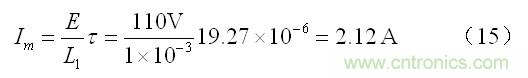 根據前面分析,以及圖8和圖11,正常工作時,流過高壓包初級線圈的最大電流Im不應該超過極限電流值Imax的70%,由此,可以求得流過高壓包初級線圈的極限電流Imax為3.21 A 。