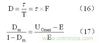 進一步求占空比D和工作頻率。下面(16)式和(17)式是計算脈沖寬度