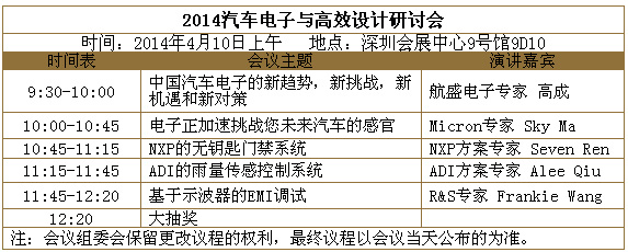 1.汽車電子和高效設(shè)計研討會(4月10日上午,深圳會展中心9號館9D10)