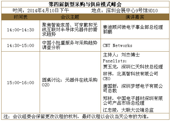 此次峰會旨在幫助供需雙方的經(jīng)理人了解熱點市場帶來的對半導(dǎo)體元器件的需求變化,中國小批量供應(yīng)服務(wù)與采購趨勢。圓桌討論將針對采購和供應(yīng)中的熱點話題,中國電子分銷商聯(lián)盟秘書長劉杰博士與行業(yè)領(lǐng)先的國內(nèi)和國際分銷商總裁和總監(jiān)們逐一分享思路,歡迎參與互動。參會可以通過網(wǎng)上或微信(關(guān)注我愛方案網(wǎng)),報名注冊: