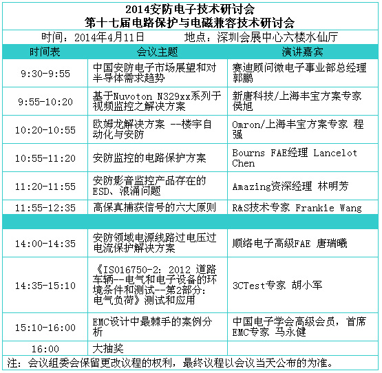 3.2014安防電子技術(shù)研討會暨第十七屆電路保護(hù)與電磁兼容技術(shù)研討會 (4月11日,深圳會展中心六樓水仙廳)