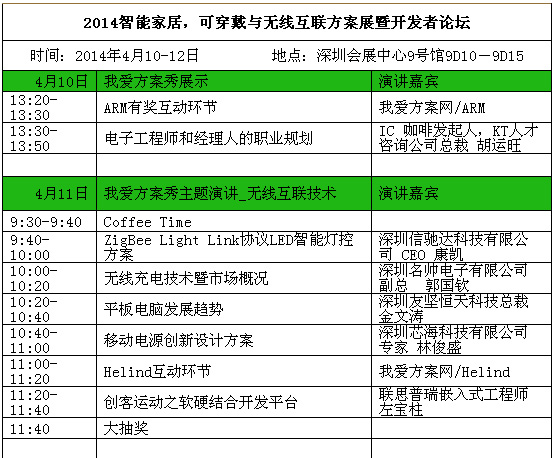 4. 三大熱點活動:智能家居,可穿戴與無線互聯(lián)方案展暨開發(fā)者論壇(4月10-12日,深圳會展中心9號館9D10-9D15)