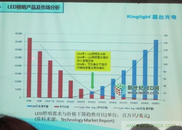 晶臺光電技術總監(jiān)邵鵬??春肔ED照明未來的發(fā)展,他說,2014年LED照明平均售價的下降將大幅刺激需求快速增長。而價格和可靠性是當前影響LED進入室內(nèi)照明的最重要因素。