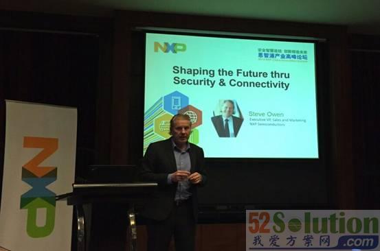 圖1:NXP全球銷(xiāo)售和市場(chǎng)執(zhí)行副總裁Steve Owen介紹NXP的安全互聯(lián)方案