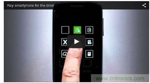 以色列新創(chuàng)公司Project Ray致力于為視障者設(shè)計(jì)實(shí)用的移動(dòng)終端,打造號(hào)稱全球唯一的“整合因特網(wǎng)服務(wù)多用途輔具”──包括Ray應(yīng)用程序以及Ray系列 Android 平臺(tái)特制手機(jī)。Ray系列手機(jī)在2012年就已問世,為Project Ray與高通(Qualcomm)以及以色列視障/身障者中央圖書館(Central Library for the Blind, Visually Impaired, and Handicapped)的合作成果。