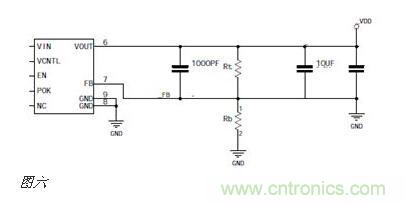 另外一點(diǎn)非常重要的是,除了PWM開(kāi)關(guān)電源,有很多線性電源(LDO),其補(bǔ)償網(wǎng)絡(luò)在芯片外部的,也要做類似的環(huán)路增益的波特圖測(cè)試,從而確保其穩(wěn)定性。LDO的測(cè)試,是絕大多數(shù)廠家容易忽略掉的。比如如下圖六所示這種電路,很多人會(huì)直接測(cè)量噪聲完事。