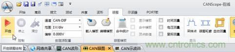 2. 打開CANScope,在DUT正常發(fā)送報文后,如圖 2點擊啟動,開啟設備的眼圖功能,獲取到如圖 3所示的眼圖波形。