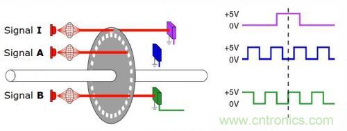 圖2a 光學(xué)編碼器標(biāo)準(zhǔn)A和B正交信號(hào)及索引信號(hào)
