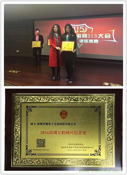 【導(dǎo)讀】“3.15”是國際消費者權(quán)益日,當(dāng)天下午,2016深圳互聯(lián)網(wǎng)315大會在中國(深圳)新媒體廣告產(chǎn)業(yè)園舉辦。大會現(xiàn)場頒發(fā)了深圳“可信企業(yè)”驗證3項大獎,深圳華強(qiáng)電子交易網(wǎng)絡(luò)有限公司獲獎,成為5家“2016深圳互聯(lián)網(wǎng)可信企業(yè)”之一。