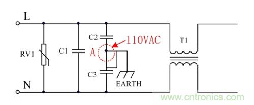 C2和C3為安規(guī)電容,當(dāng)失效后擊穿不會短路,而是斷路,確保了安全。