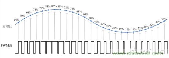 脈沖寬度調(diào)制(PWM)是一種對模擬信號進行數(shù)字編碼的方法。通過高分辨率計數(shù)器的使用,方波的占空比被調(diào)制用來對一個具體模擬信號進行編碼。PWM信號仍然是數(shù)字的,因為在給定的任何時刻,滿幅值的直流供電要么完全有(ON),要么完全無(OFF)。電壓或電流是以一種通(ON)或斷(OFF)的重復脈沖序列被加到模擬負載上去。通的時候即是直流供電被加到負載上的時候,斷的時候即是供電被斷開的時候。只要帶寬足夠,任何模擬值都可以使用PWM進行編碼。而占空比就是高電平持續(xù)時間與整個周期時間的比值,占空比越大,高電平持續(xù)的時間越長,模擬電路開通的時間就越長,如圖1所示。