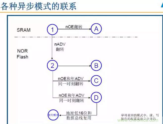 需要注意:無論數(shù)據(jù)寬度是多少,外部的FSMC_A[0]和A[0]總是對應的。
