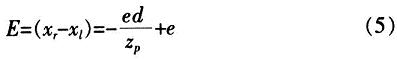 左視點Leye和右視點Reye均位于X軸上,兩視點間的距離為e,兩視點連線中心為坐標原點,則左視點的坐標為(-e/2,0,0),右視點的坐標為(+e/2,0,0)。投影平面平行于XY平面,到左右視點的距離均為d。三維空間中一點P(xp,yp,zp)在左視點投影中的坐標為(xl,yl,zl),在右視點投影中的坐標為(xr,yr,zr),則zl=zr=d。點P(xp,yp,zp)和Reye投影線的參數(shù)方程為: