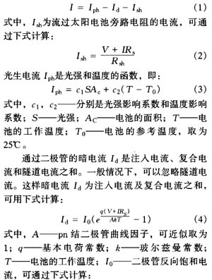 由上述模型可以看出,太陽電他的輸出特性和工作溫度不可能通過分析解來得到,必須通過迭代和數(shù)值模擬的方法得到。計(jì)算方法是通過熱平衡方程得到太陽電他的工作溫度,然后通過太陽電他的電特性方程計(jì)算電他的伏安特性,得到太陽電他的峰值輸出功率、轉(zhuǎn)換效率等參數(shù),然后再把新的轉(zhuǎn)換效率代入熱平衡方程進(jìn)行新一輪計(jì)算,直到滿足計(jì)算精度為止。