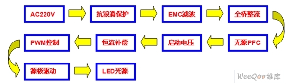 圖118WLED日光燈系統(tǒng)方案設(shè)計(jì)方框圖