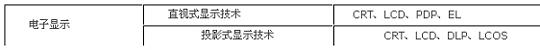 電子顯示又有很多類別,我們可以簡單地將其分為直視式和投影式兩種。每種方式又包含多種顯示技術(shù),如下表所示: