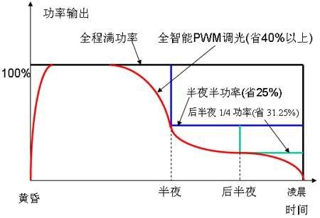 一般來說,路燈到半夜以后就沒有什么用處了,所以通常的做法是12點(diǎn)以后關(guān)燈或者開一半亮度。但是最合理的做法是根據(jù)交通流量來控制路燈的亮度,甚至是完全自適應(yīng)地控制亮度。圖10就是根據(jù)當(dāng)?shù)亟煌髁康慕y(tǒng)計(jì)值來調(diào)節(jié)路燈亮度的一個例子。