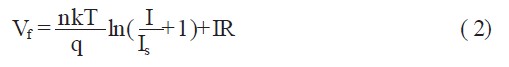 式中: I 為正向電流;n 為理想因子;k 為玻爾茲曼常數(shù)(1.38x10- 23 J /K) ; T 為溫度( 298K 或25℃) ;q 為電子電量( 1.602x10- 19 C) ;Is 為飽和電流; R 為寄生電阻;本文以西鐵成公司的發(fā)光二極管為例, 其特性參數(shù)如表1 所示。