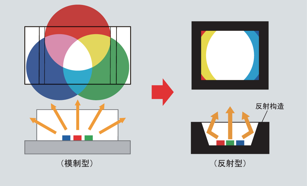 1)高密度化的發(fā)光元件,卓越的混色性能