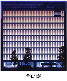 于2010年整體煥然一新的羅姆日本京都站前大樓景觀燈,整座大樓采用羅姆自產(chǎn)的LED照明等產(chǎn)品。大樓正面的墻面縱橫組合安裝了羅姆生產(chǎn)的全彩LED和可進(jìn)行色溫微細(xì)調(diào)整的LED模塊,實現(xiàn)了如同透過紙窗一樣的柔和光線。該設(shè)計根據(jù)季節(jié)對色溫進(jìn)行微妙的調(diào)整,表達(dá)了日本細(xì)膩的季節(jié)感,與京都街道風(fēng)格融為一體。