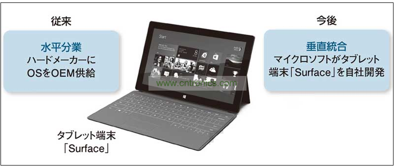 一直很重視與硬件廠商水平分工以建立“生態(tài)系統(tǒng)”的微軟,轉(zhuǎn)換成了連硬件也一同開發(fā)的垂直整合戰(zhàn)略