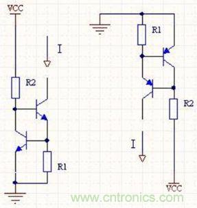 用兩個晶體三極管,也可以構(gòu)成一個恒流源(圖6a)。