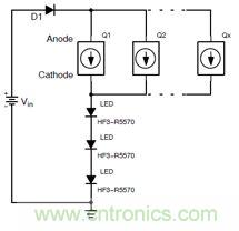 為了加大電流,最簡單的方法就是用幾個恒流二極管并聯(lián)(圖14)