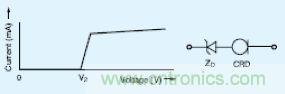 它在某一個電壓范圍內(nèi)有一段恒流區(qū)間,在這個區(qū)間,流經(jīng)的電流幾乎不變,VL為到達(dá)IL的電壓值,IL大約為0.8Ip,Vb為擊穿電壓值。但是實際的恒流二極管并不是那么理想。圖3是美國Supertex的CL1恒流二極管的特性。它的電流仍然會隨電壓而有所增加。