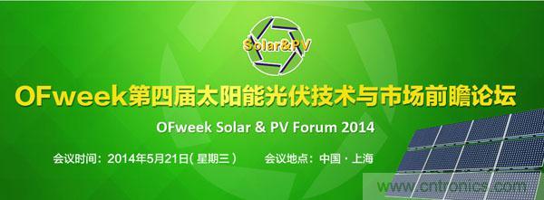 2014年5月21日,由OFweek主辦、OFweek太陽能光伏網(wǎng)承辦的“OFweek Solar & PV Forum 2014太陽能光伏技術(shù)與市場(chǎng)前瞻論壇”將在上海隆重舉行。本次峰會(huì)擬邀請(qǐng)杜邦、MANZ、特變、山億新能源等知名企業(yè)專家、高層,以及政策決策機(jī)構(gòu)、行業(yè)組織機(jī)構(gòu)嘉賓主講太陽能電池轉(zhuǎn)換效率的技術(shù)、CIGS薄膜電池技術(shù)與投資、光伏電站項(xiàng)目投資收益率(IRR)等重大議題。同時(shí)OFweek行業(yè)研究中心太陽能光伏領(lǐng)域分析師團(tuán)隊(duì)針對(duì)2014年中國光伏電站領(lǐng)域的建設(shè)熱點(diǎn)和投資機(jī)會(huì)共同組織本次論壇,給業(yè)界及希望在光伏領(lǐng)域?qū)ふ倚聶C(jī)會(huì)的投資方以明確的分析和投資指南。