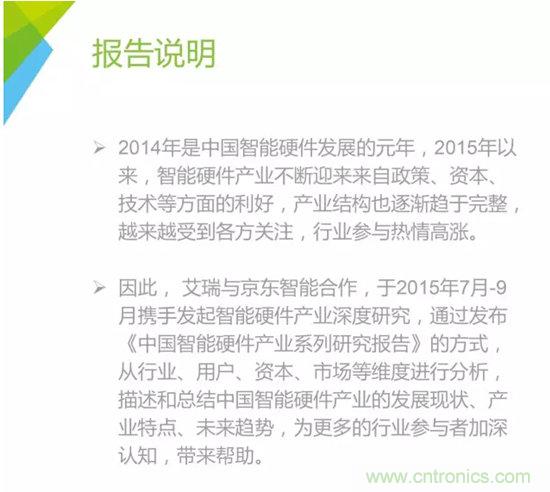 作為此次系列報告的開篇,京東智能與艾瑞對當前智能硬件的產(chǎn)業(yè)鏈結(jié)構(gòu),發(fā)布了行業(yè)報告《2015中國智能硬件產(chǎn)業(yè)系列研究報告——產(chǎn)業(yè)鏈圖譜篇》該圖譜對現(xiàn)階段的智能硬件的發(fā)展趨勢進行了劃分和定義,并對產(chǎn)業(yè)鏈的結(jié)構(gòu)進行了分析。