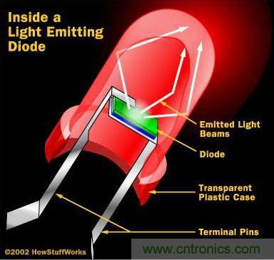【導(dǎo)讀】發(fā)光二極管,通常稱為L(zhǎng)ED,是電子學(xué)世界真正的無(wú)名英雄?;旧?發(fā)光二極管只是一個(gè)微小的電燈泡。但不像常見(jiàn)的白熾燈泡,它沒(méi)有燈絲,又不會(huì)特別熱。單單是由半導(dǎo)體材料里的電子移動(dòng)使其發(fā)光。