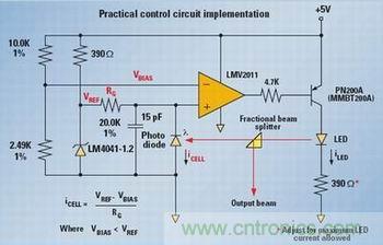 【導(dǎo)讀】在利用光來控制應(yīng)用的過程中,要長期保持原始設(shè)定的發(fā)光強(qiáng)度需要一個控制電路來監(jiān)控發(fā)光狀況,并控制供給光發(fā)射器件的電流以保持輸出恒定。而采用一個簡單的運(yùn)算放大器電路就做到,即便發(fā)光器件老化,通過調(diào)整LED電流,一個控制環(huán)也可維持恒定的光強(qiáng)度。