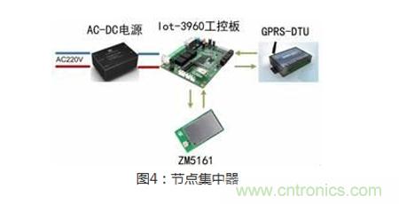 這就是二級(jí)終端ZigBee集中器,它由ZM5161模塊,Iot-3960工控板和GPRS-DTU組成,主要用來實(shí)現(xiàn)ZigBee信號(hào)與GPRS信號(hào)的轉(zhuǎn)換,通過公網(wǎng)傳輸給控制中心。