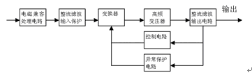 開關(guān)電源的結(jié)構(gòu)如圖1所示。首先將工頻交流整流為直流,再逆變?yōu)楦哳l,最后再經(jīng)整流濾波電路輸出,得到穩(wěn)定的直流電壓。電路設(shè)計(jì)及布局不合理、機(jī)械振動、接地不良等都會形成內(nèi)部電磁干擾。同時(shí),變壓器的漏感和輸出二極管的反向恢復(fù)電流造成的尖峰,也是潛在的強(qiáng)干擾源。