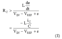 其中,iC是輸出電容器的電流,它在0A的穩(wěn)態(tài)點周圍產(chǎn)生紋波。將2ICMAX定為紋波電流iC的峰到峰的最高值。那當s>0時,要獲得ds/dt<0的足夠條件為: