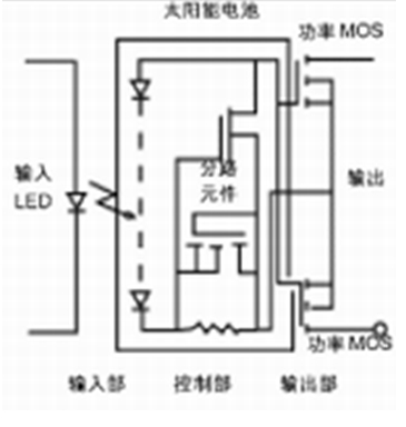 上述電路各有利弊,為了制造出高性能(高靈敏度、快速、抗干擾)且低成本的繼電器,在PhotoMOS繼電器中配置了如圖5所示的新開(kāi)發(fā)的電路結(jié)構(gòu)的光電元件。