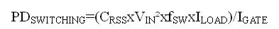 其中CRSS是MOSFET的反向傳輸電容(數(shù)據(jù)資料中的一個參數(shù)),fSW為開關(guān)頻率,IGATE是MOSFET的柵極驅(qū)動器在MOSFET處于臨界導通(VGS位于柵極充電曲線的平坦區(qū)域)時的吸收/源出電流。