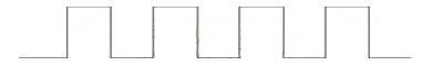 而當(dāng)輸出電壓降至50V5A時(shí),控制脈沖的寬度降到最寬脈沖的10%,形如: