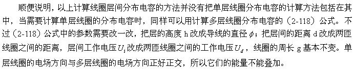 設(shè)兩個(gè)線圈相對(duì)應(yīng)的兩表層間的電場(chǎng)近似均勻分布,即近似平板電容器的電場(chǎng),那么,根據(jù)(2-112)式就可以求得該電場(chǎng)貯存的能量為: