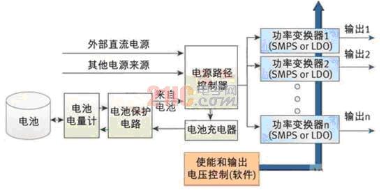 圖:典型便攜嵌入式系統(tǒng)的電源管理方案。