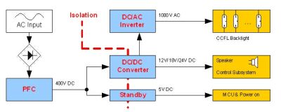 圖3:傳統(tǒng)式LCDTV電源系統(tǒng)結(jié)構(gòu)框圖。