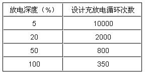 蓄電池的壽命一般是這樣定義的,浮充狀態(tài)下為3-5年或3-8年,并不是說蓄電池在頻繁放電狀態(tài)下使用多少年。對處于非浮充狀態(tài)下工作的蓄電池,其壽命是按照循環(huán)放電次數(shù)和放電深度兩個因素衡量,如表1所示。簡單地以能使用多少年來衡量,是不正確的。